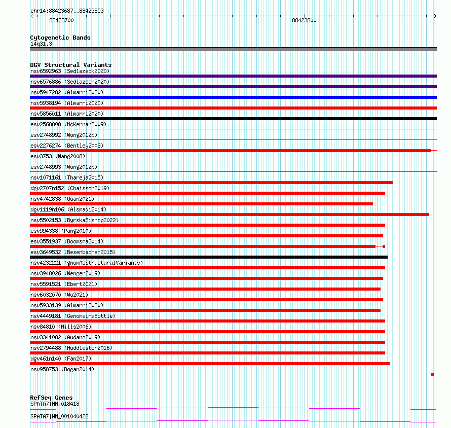 Variant DetailsVariant: essv6688525| Internal ID | 10102306 | | Landmark | | | Location Information | | | Cytoband | 14q31.3 | | Allele length | | Assembly | Allele length | | hg38 | 167 | | hg19 | 167 |
