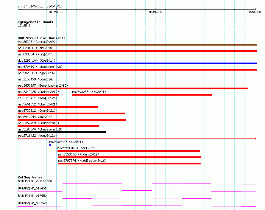Variant DetailsVariant: essv6688874| Internal ID | 10102637 | | Landmark | | | Location Information | | | Cytoband | 17q25.3 | | Allele length | | Assembly | Allele length | | hg38 | 241 | | hg19 | 241 |