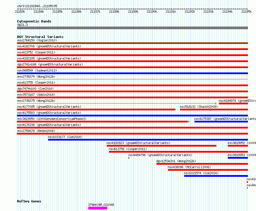 Variant DetailsVariant: essv6690376| Internal ID | 9636228 | | Landmark | | | Location Information | | | Cytoband | 9p21.3 | | Allele length | | Assembly | Allele length | | hg38 | 12187 | | hg19 | 12187 |