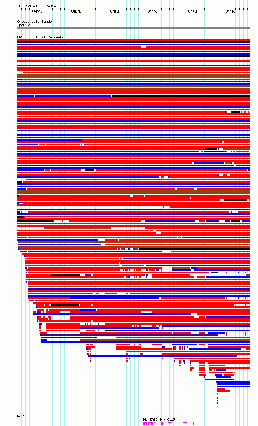 Variant DetailsVariant: essv6690397| Internal ID | 10106515 | | Landmark | | | Location Information | | | Cytoband | 6p21.32 | | Allele length | | Assembly | Allele length | | hg38 | 59584 | | hg19 | 59584 |