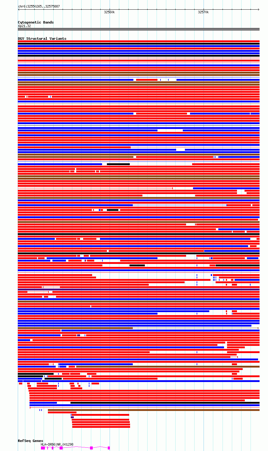 Variant DetailsVariant: essv6690414| Internal ID | 10106534 | | Landmark | | | Location Information | | | Cytoband | 6p21.32 | | Allele length | | Assembly | Allele length | | hg38 | 25623 | | hg19 | 25623 |
