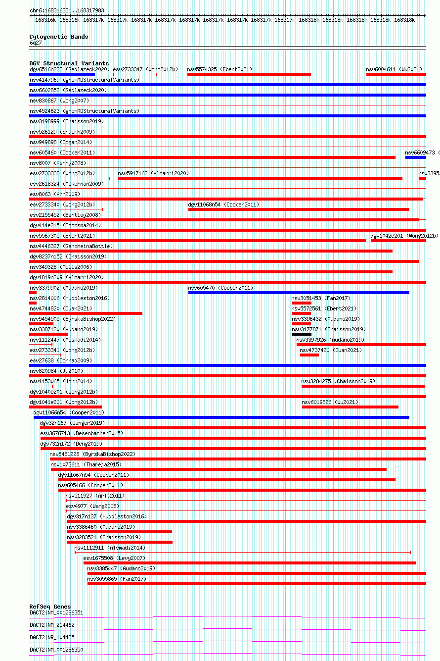 Variant DetailsVariant: essv6690609| Internal ID | 10106760 | | Landmark | | | Location Information | | | Cytoband | 6q27 | | Allele length | | Assembly | Allele length | | hg38 | 1653 | | hg19 | 1653 |