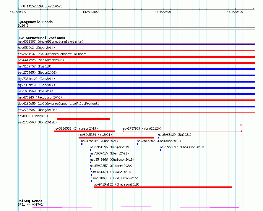 Variant DetailsVariant: essv6691135| Internal ID | 10104235 | | Landmark | | | Location Information | | | Cytoband | 8q24.3 | | Allele length | | Assembly | Allele length | | hg38 | 327 | | hg19 | 327 |