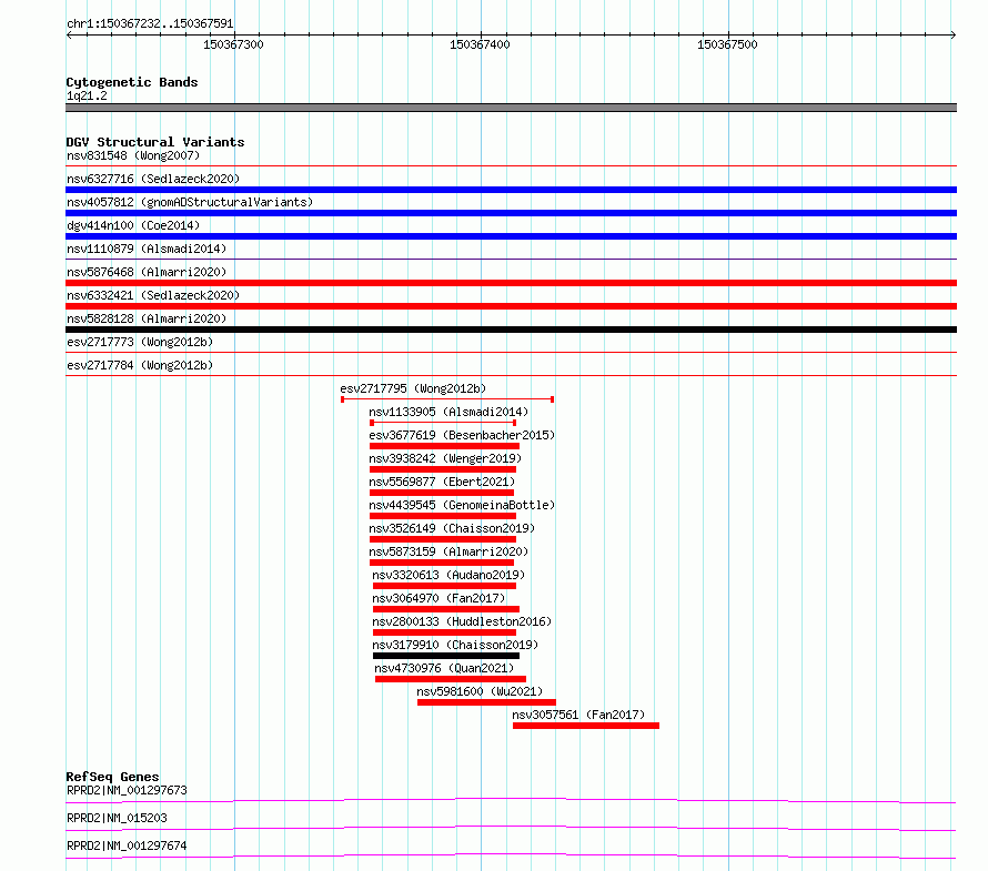 Variant DetailsVariant: essv6692881| Internal ID | 10106961 | | Landmark | | | Location Information | | | Cytoband | 1q21.3 | | Allele length | | Assembly | Allele length | | hg38 | 360 | | hg19 | 360 |