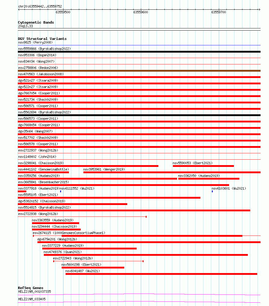 Variant DetailsVariant: essv6693565| Internal ID | 9994450 | | Landmark | | | Location Information | | | Cytoband | 20q13.33 | | Allele length | | Assembly | Allele length | | hg38 | 311 | | hg19 | 311 |