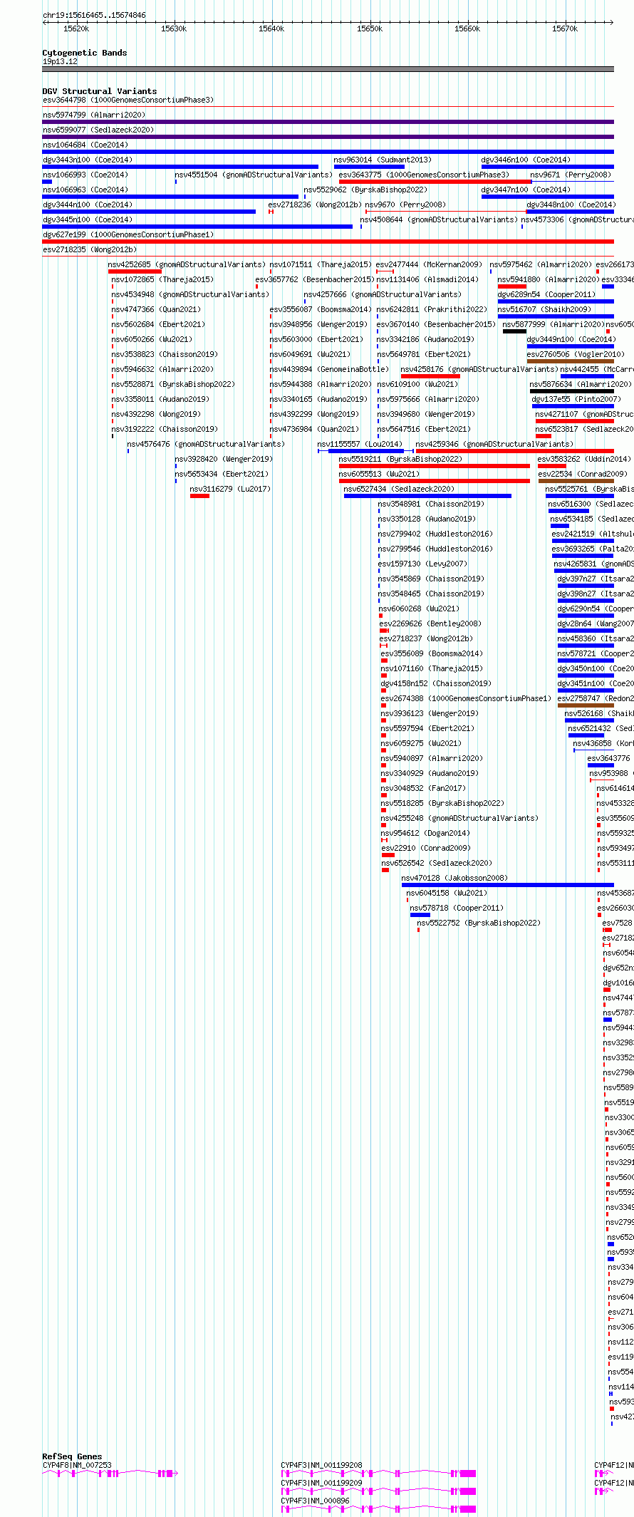Variant DetailsVariant: essv6693809| Internal ID | 9994351 | | Landmark | | | Location Information | | | Cytoband | 19p13.12 | | Allele length | | Assembly | Allele length | | hg38 | 58382 | | hg19 | 58381 |