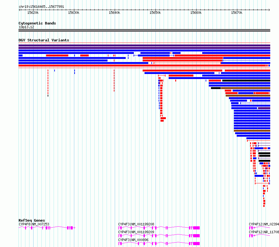 | | Variant Type | CNV deletion | | Copy Number | | | Allele State | | | Allele Origin | | | Probe Count | | | Validation Flag | | | Merged Status | S | | Merged Variants | esv2718235 | | Supporting Variants | | | Samples | SSM005 | | Known Genes | CYP4F12, CYP4F3, CYP4F8 | | Method | Sequencing | | Analysis | Breakdancer:4 times standard deviation,VariationHunter:4 times standard deviation and at least 3 supportting reads | | Platform | Illumina HiSeq 2000 | | Comments | | | Reference | Wong_et_al_2012b | | Pubmed ID | 23290073 | | Accession Number(s) | essv6693821