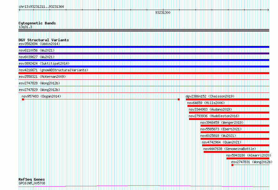 Variant DetailsVariant: essv6695767| Internal ID | 10109317 | | Landmark | | | Location Information | | | Cytoband | 13q31.3 | | Allele length | | Assembly | Allele length | | hg38 | 154 | | hg19 | 154 |
