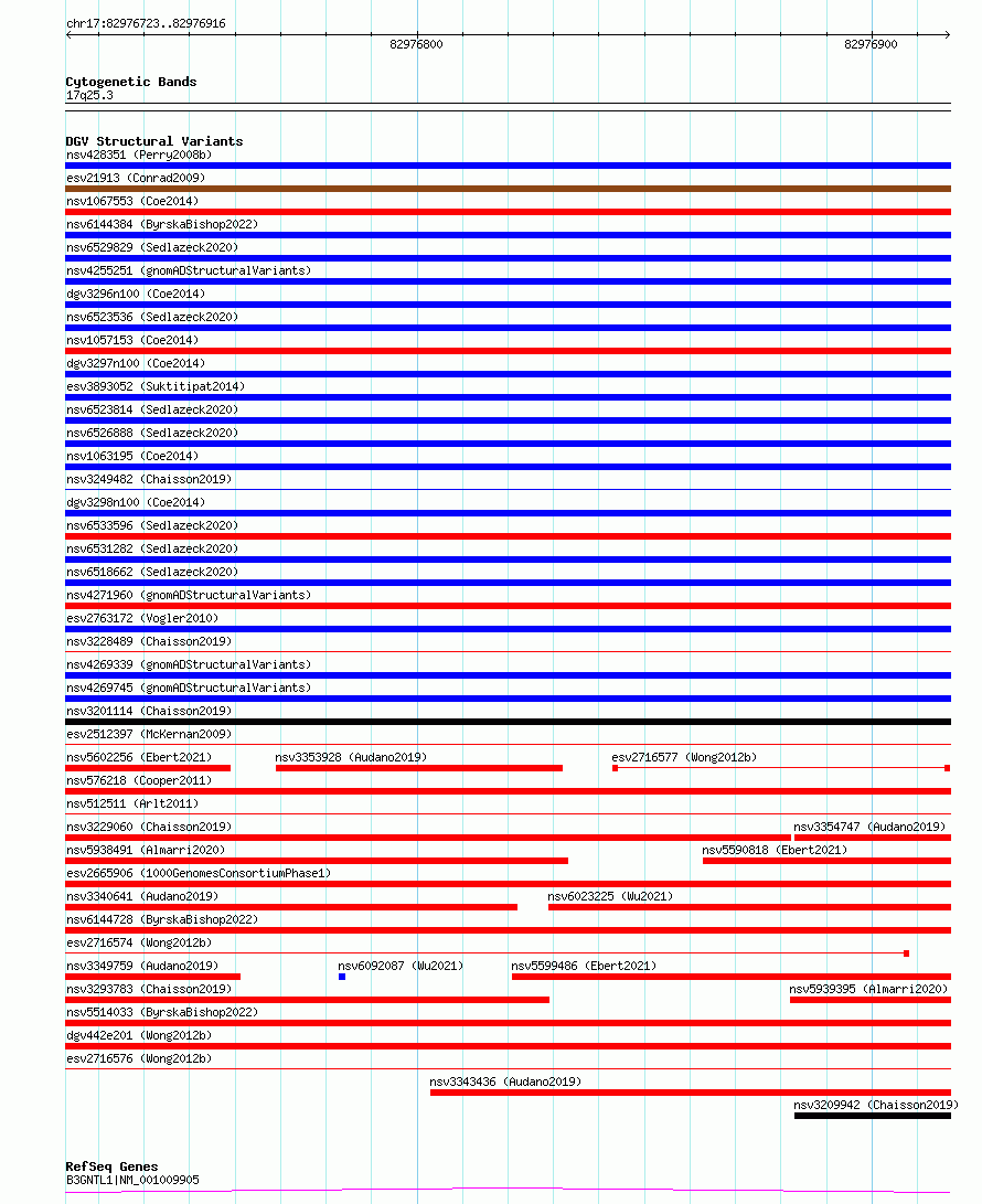 Variant DetailsVariant: essv6696369| Internal ID | 10107734 | | Landmark | | | Location Information | | | Cytoband | 17q25.3 | | Allele length | | Assembly | Allele length | | hg38 | 194 | | hg19 | 194 |