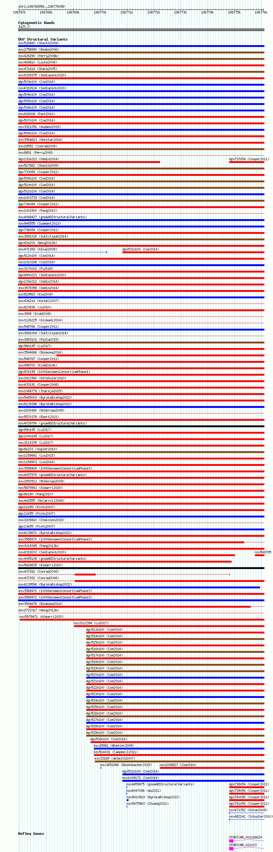 Variant DetailsVariant: essv6696721| Internal ID | 9995266 | | Landmark | | | Location Information | | | Cytoband | 1q31.3 | | Allele length | | Assembly | Allele length | | hg38 | 9134 | | hg19 | 9134 |