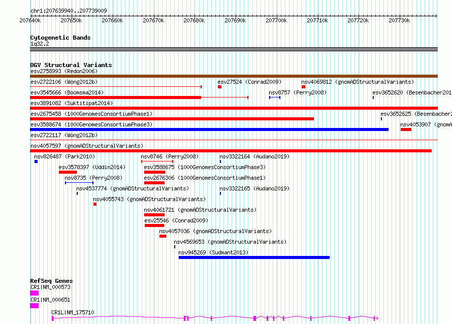 | | Variant Type | CNV deletion | | Copy Number | | | Allele State | | | Allele Origin | | | Probe Count | | | Validation Flag | | | Merged Status | S | | Merged Variants | esv2722117 | | Supporting Variants | | | Samples | SSM038 | | Known Genes | CR1, CR1L | | Method | Sequencing | | Analysis | Breakdancer:4 times standard deviation,VariationHunter:4 times standard deviation and at least 3 supportting reads | | Platform | Illumina HiSeq 2000 | | Comments | | | Reference | Wong_et_al_2012b | | Pubmed ID | 23290073 | | Accession Number(s) | essv6697107