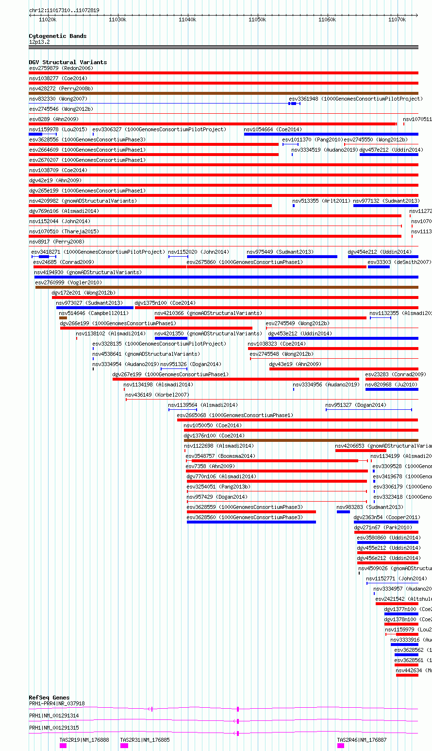 Variant DetailsVariant: essv6698731| Internal ID | 9764771 | | Landmark | | | Location Information | | | Cytoband | 12p13.2 | | Allele length | | Assembly | Allele length | | hg38 | 55510 | | hg19 | 55510 |