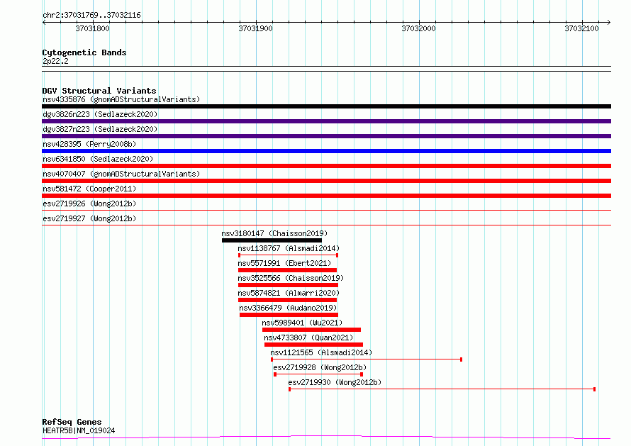 Variant DetailsVariant: essv6699938| Internal ID | 10116093 | | Landmark | | | Location Information | | | Cytoband | 2p22.2 | | Allele length | | Assembly | Allele length | | hg38 | 348 | | hg19 | 348 |