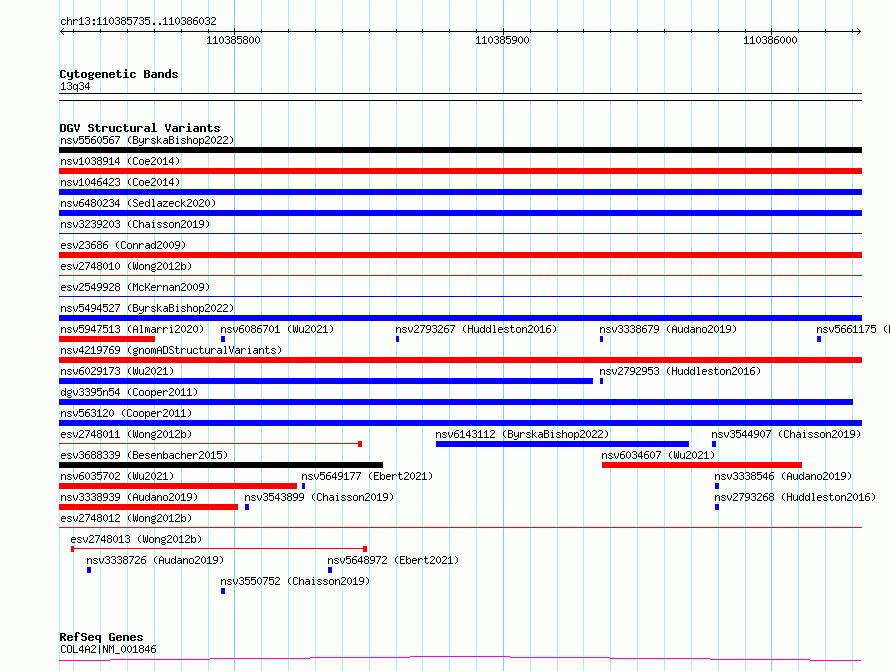 | | Variant Type | CNV deletion | | Copy Number | | | Allele State | | | Allele Origin | | | Probe Count | | | Validation Flag | | | Merged Status | S | | Merged Variants | esv2748010, esv2748012 | | Supporting Variants | | | Samples | SSM039 | | Known Genes | COL4A2 | | Method | Sequencing | | Analysis | Breakdancer:4 times standard deviation,VariationHunter:4 times standard deviation and at least 3 supportting reads | | Platform | Illumina HiSeq 2000 | | Comments | | | Reference | Wong_et_al_2012b | | Pubmed ID | 23290073 | | Accession Number(s) | essv6702672