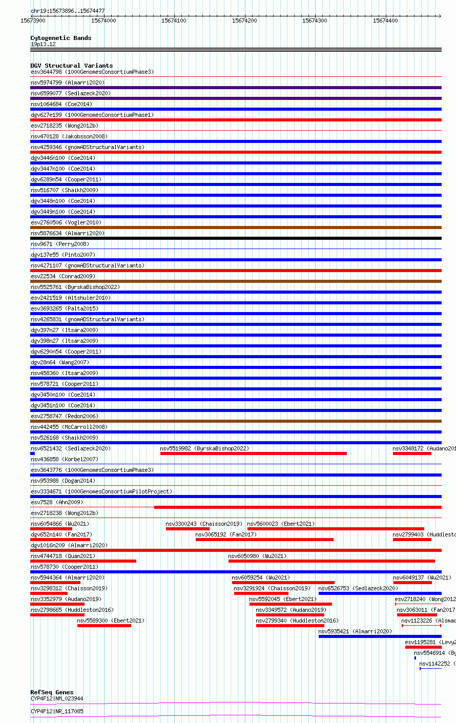 Variant DetailsVariant: essv6703519| Internal ID | 10116596 | | Landmark | | | Location Information | | | Cytoband | 19p13.12 | | Allele length | | Assembly | Allele length | | hg38 | 582 | | hg19 | 582 |