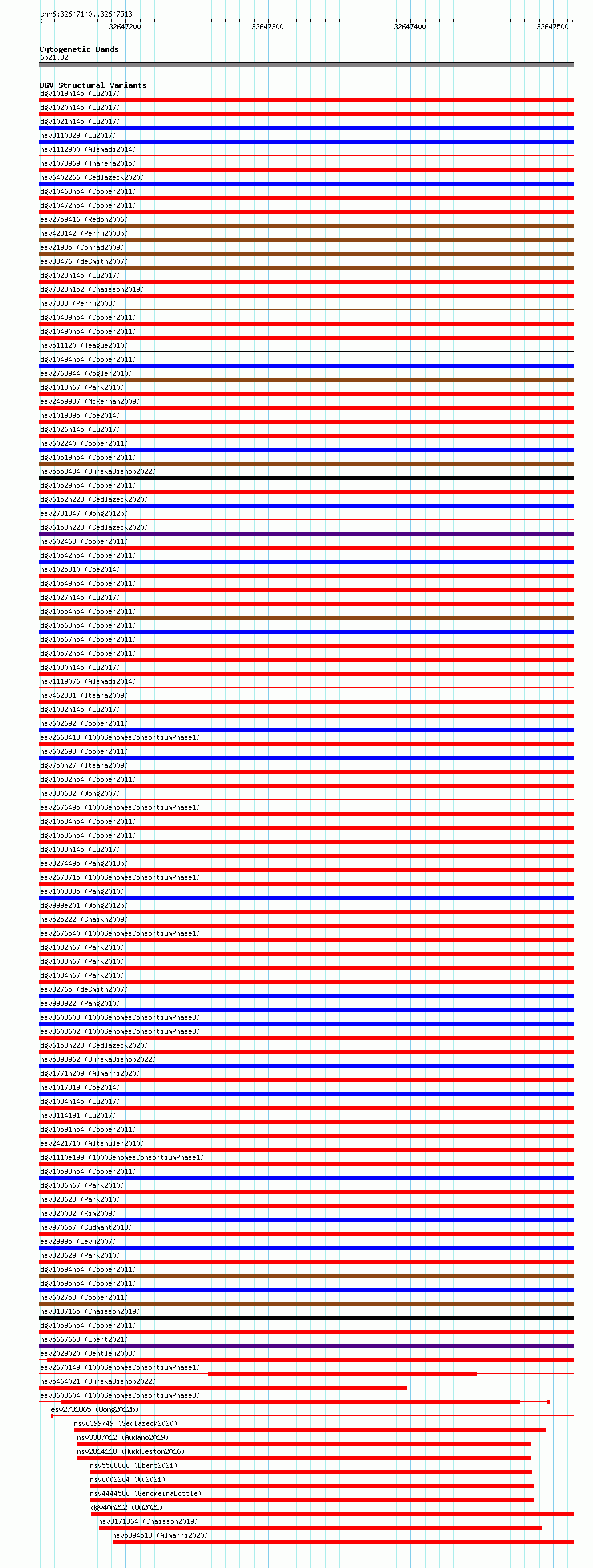 Variant DetailsVariant: essv6703721| Internal ID | 9996749 | | Landmark | | | Location Information | | | Cytoband | 6p21.32 | | Allele length | | Assembly | Allele length | | hg38 | 374 | | hg19 | 374 |