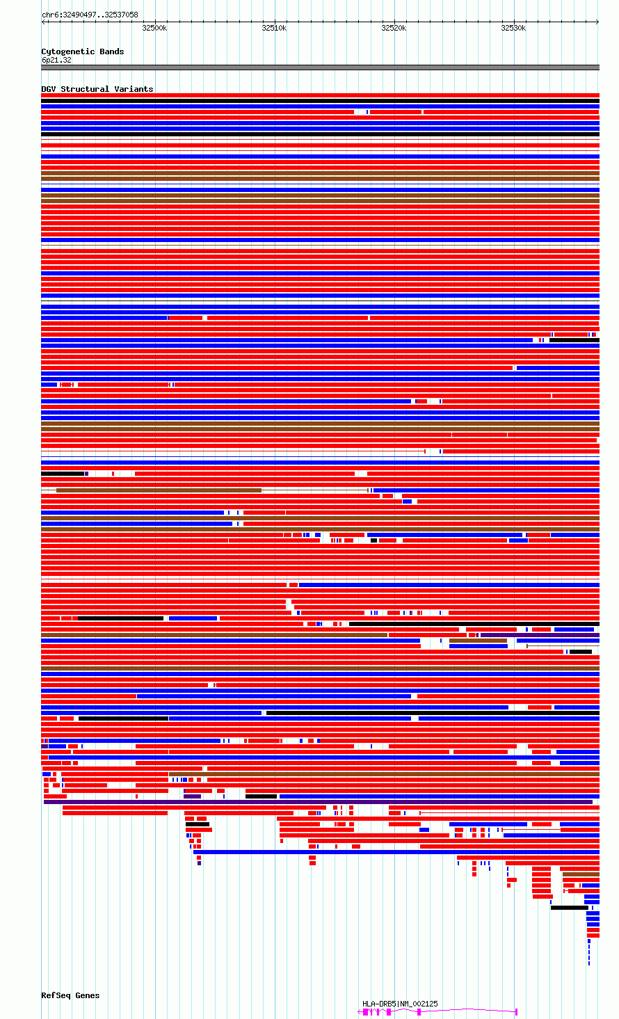 Variant DetailsVariant: essv6704969| Internal ID | 10117953 | | Landmark | | | Location Information | | | Cytoband | 6p21.32 | | Allele length | | Assembly | Allele length | | hg38 | 46562 | | hg19 | 46562 |