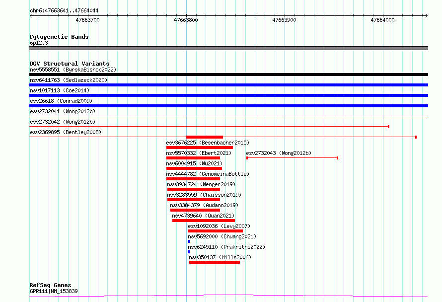 Variant DetailsVariant: essv6705046| Internal ID | 10118022 | | Landmark | | | Location Information | | | Cytoband | 6p12.3 | | Allele length | | Assembly | Allele length | | hg38 | 404 | | hg19 | 404 |