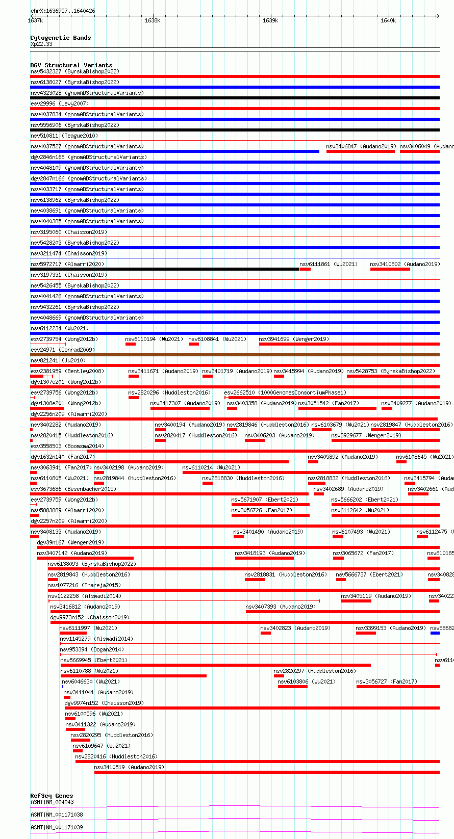 Variant DetailsVariant: essv6705479| Internal ID | 10118412 | | Landmark | | | Location Information | | | Cytoband | Xp22.33 | | Allele length | | Assembly | Allele length | | hg38 | 3470 | | hg19 | 3470 |