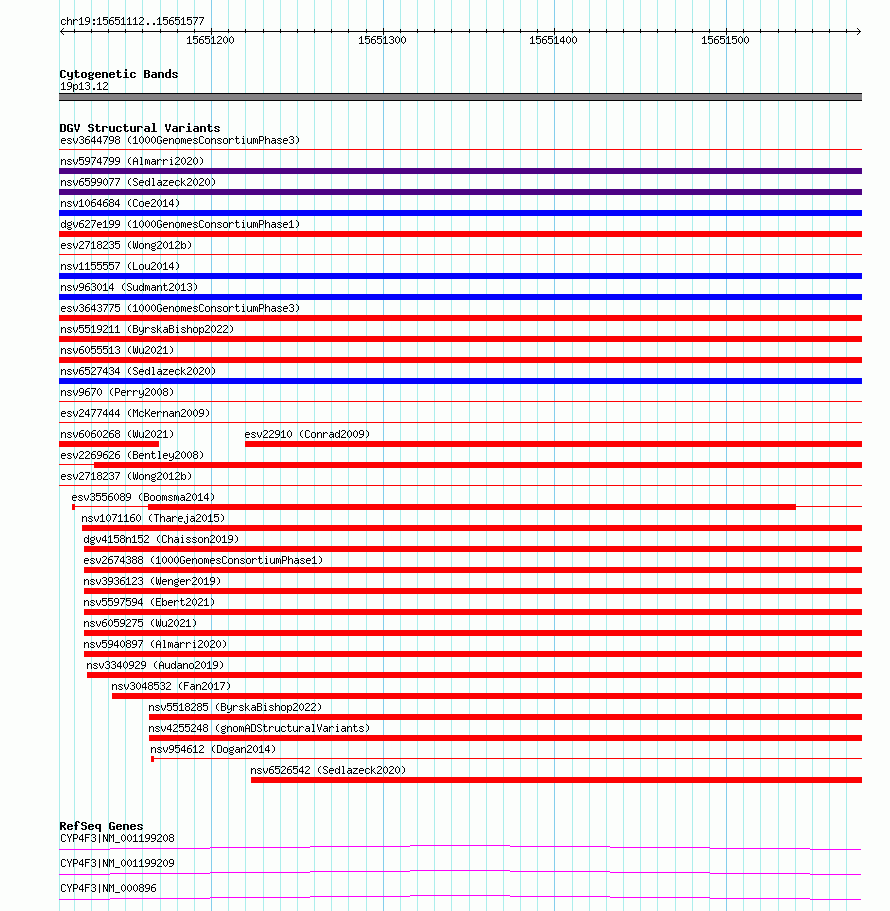 | | Variant Type | CNV deletion | | Copy Number | | | Allele State | | | Allele Origin | | | Probe Count | | | Validation Flag | | | Merged Status | S | | Merged Variants | esv2718235, esv2718237 | | Supporting Variants | | | Samples | SSM040 | | Known Genes | CYP4F3 | | Method | Sequencing | | Analysis | Breakdancer:4 times standard deviation,VariationHunter:4 times standard deviation and at least 3 supportting reads | | Platform | Illumina HiSeq 2000 | | Comments | | | Reference | Wong_et_al_2012b | | Pubmed ID | 23290073 | | Accession Number(s) | essv6707005