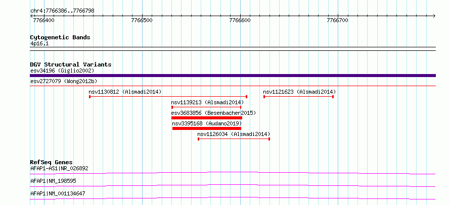 Variant DetailsVariant: essv6707902| Internal ID | 9773310 | | Landmark | | | Location Information | | | Cytoband | 4p16.1 | | Allele length | | Assembly | Allele length | | hg38 | 413 | | hg19 | 413 |