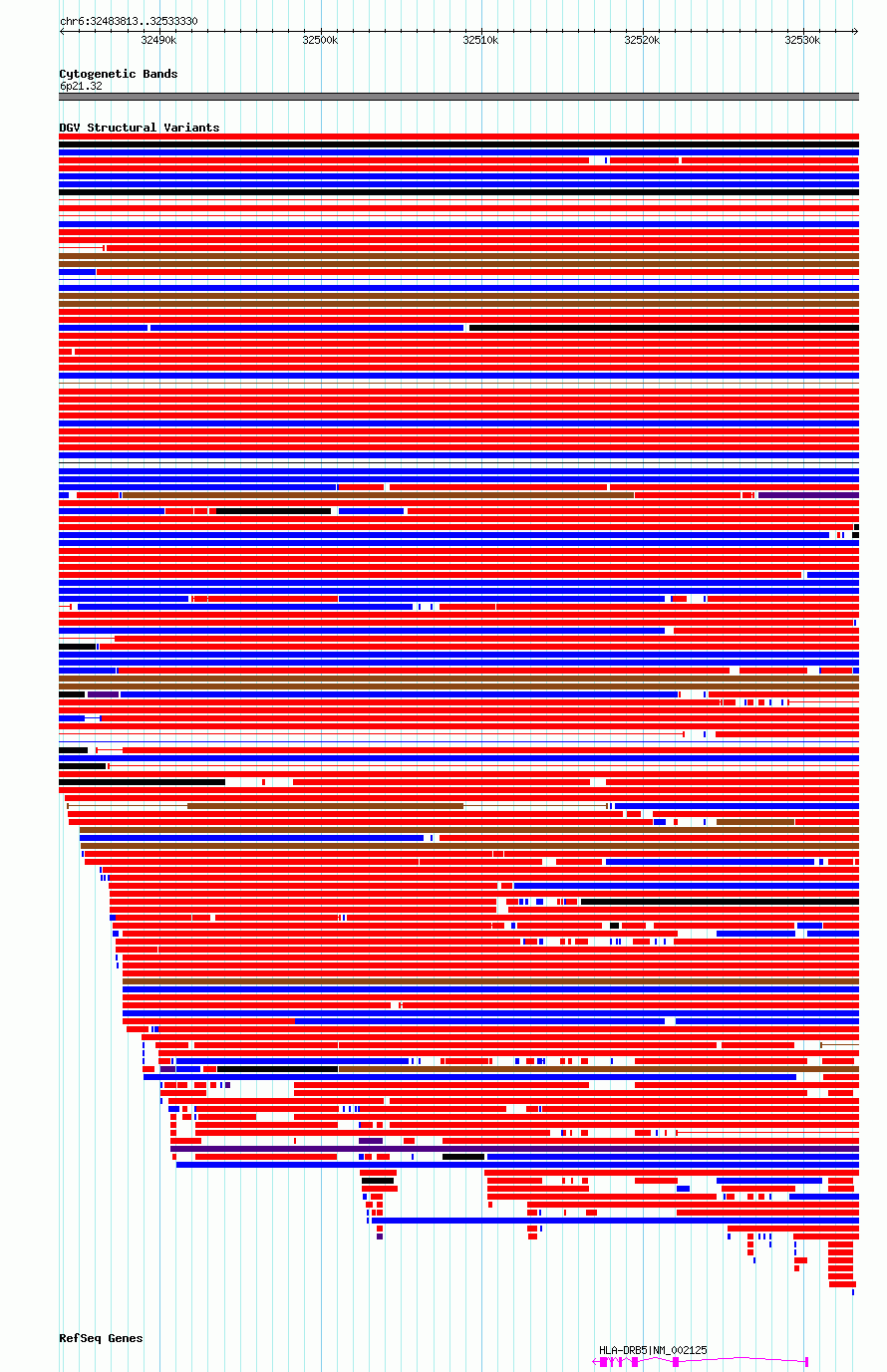 Variant DetailsVariant: essv6708393| Internal ID | 10122485 | | Landmark | | | Location Information | | | Cytoband | 6p21.32 | | Allele length | | Assembly | Allele length | | hg38 | 49518 | | hg19 | 49518 |