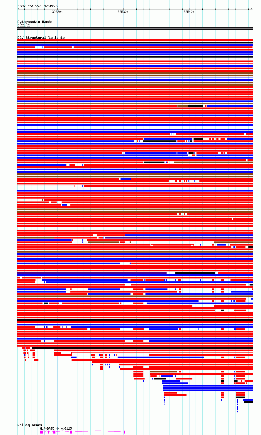 Variant DetailsVariant: essv6708405| Internal ID | 10122472 | | Landmark | | | Location Information | | | Cytoband | 6p21.32 | | Allele length | | Assembly | Allele length | | hg38 | 35633 | | hg19 | 35633 |