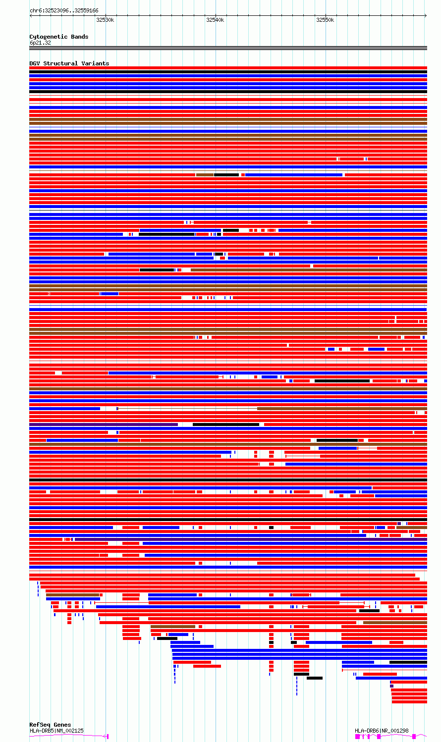 Variant DetailsVariant: essv6708430| Internal ID | 10122447 | | Landmark | | | Location Information | | | Cytoband | 6p21.32 | | Allele length | | Assembly | Allele length | | hg38 | 36071 | | hg19 | 36071 |