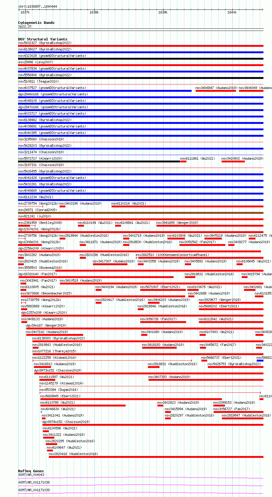 Variant DetailsVariant: essv6708824| Internal ID | 10122054 | | Landmark | | | Location Information | | | Cytoband | Xp22.33 | | Allele length | | Assembly | Allele length | | hg38 | 3548 | | hg19 | 3548 |