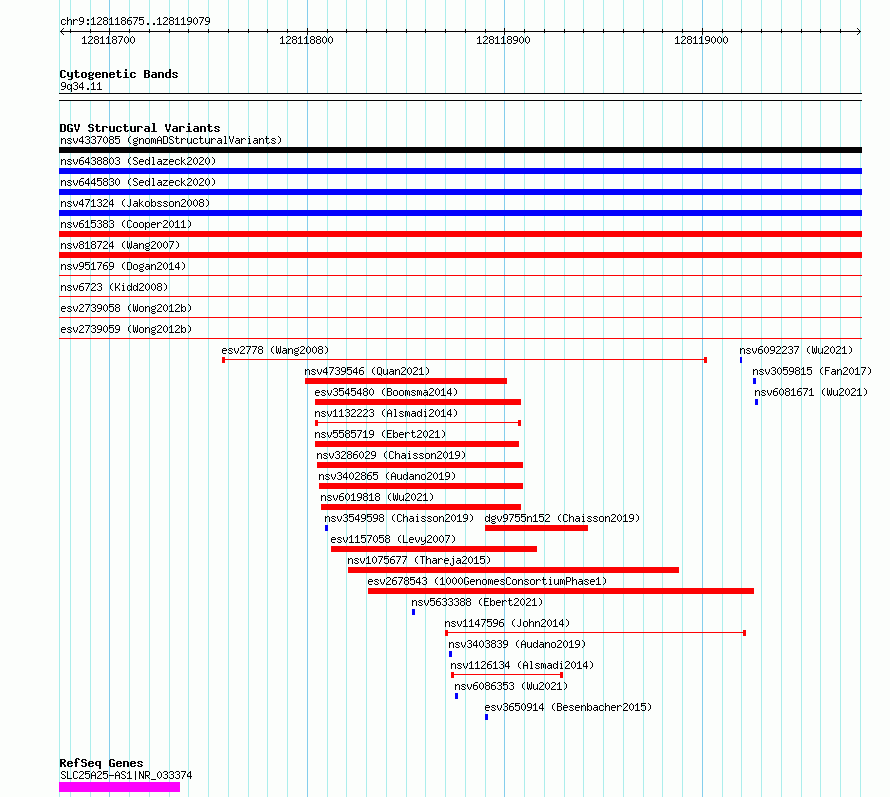 Variant DetailsVariant: essv6712637| Internal ID | 10125147 | | Landmark | | | Location Information | | | Cytoband | 9q34.11 | | Allele length | | Assembly | Allele length | | hg38 | 405 | | hg19 | 405 |