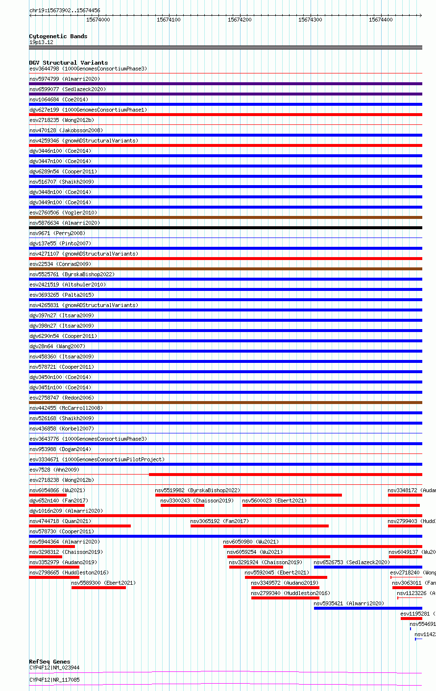 Variant DetailsVariant: essv6713926| Internal ID | 10123035 | | Landmark | | | Location Information | | | Cytoband | 19p13.12 | | Allele length | | Assembly | Allele length | | hg38 | 555 | | hg19 | 555 |