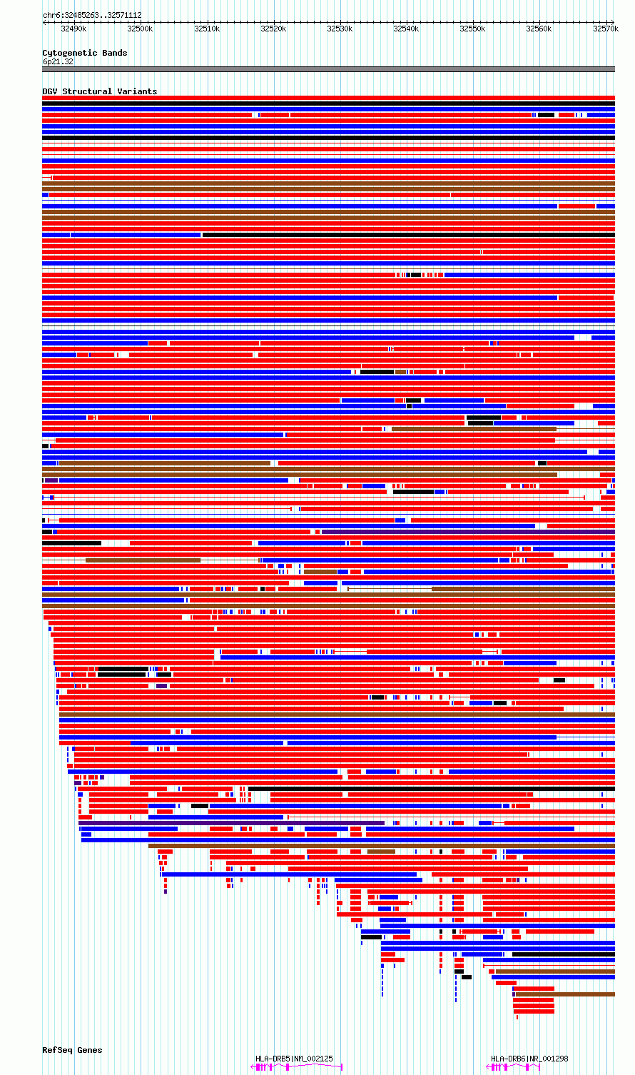 Variant DetailsVariant: essv6715497| Internal ID | 10127428 | | Landmark | | | Location Information | | | Cytoband | 6p21.32 | | Allele length | | Assembly | Allele length | | hg38 | 85850 | | hg19 | 85850 |