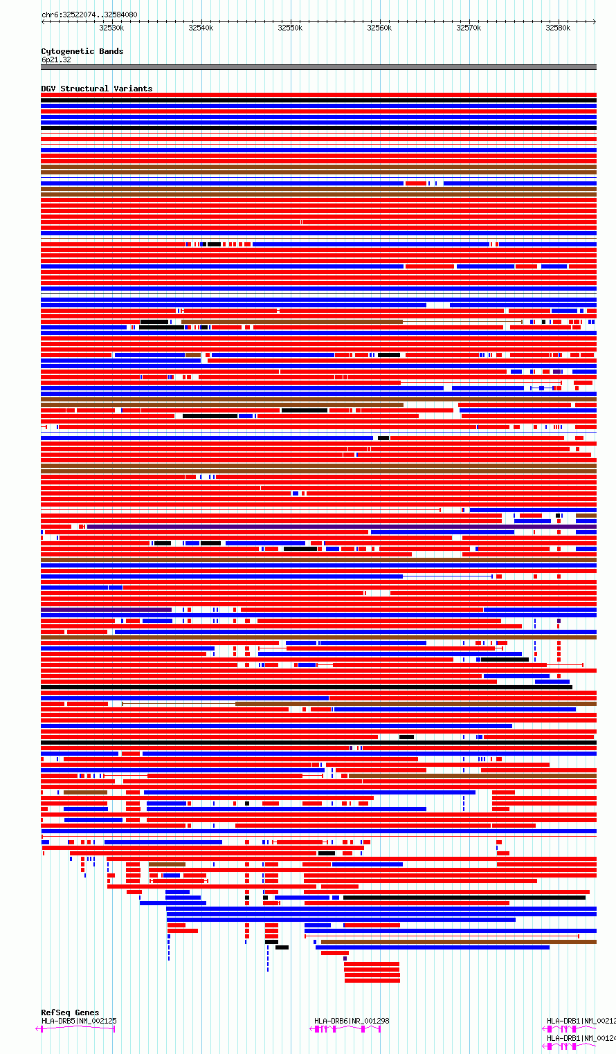 Variant DetailsVariant: essv6715511| Internal ID | 10127440 | | Landmark | | | Location Information | | | Cytoband | 6p21.32 | | Allele length | | Assembly | Allele length | | hg38 | 62007 | | hg19 | 62007 |