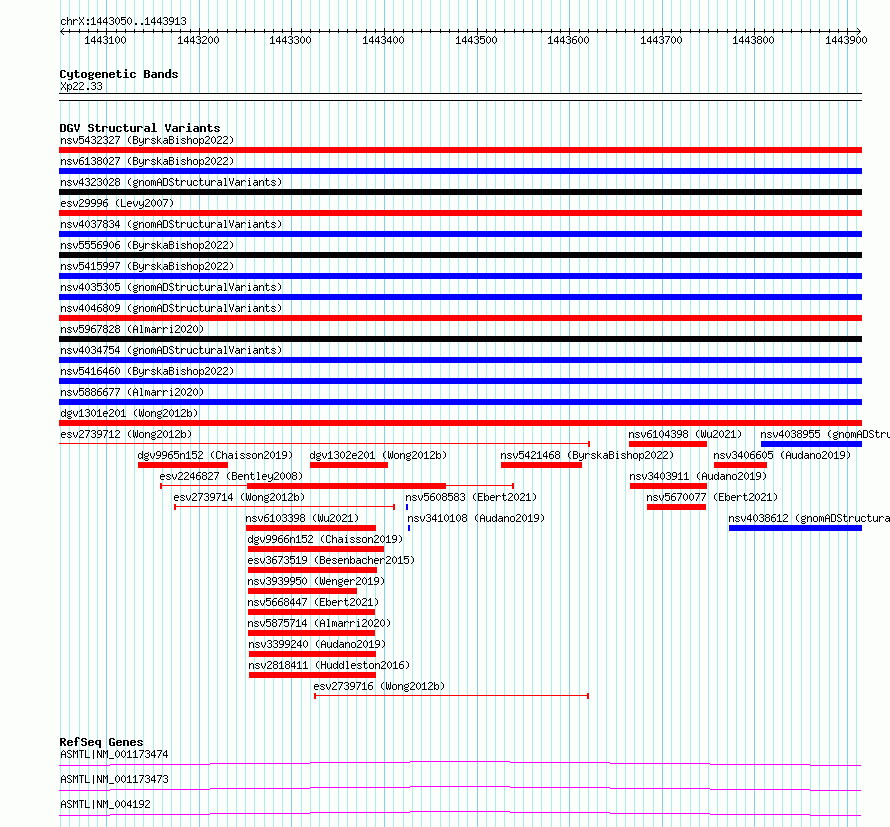 Variant DetailsVariant: essv6715988| Internal ID | 10127870 | | Landmark | | | Location Information | | | Cytoband | Xp22.33 | | Allele length | | Assembly | Allele length | | hg38 | 864 | | hg19 | 864 |