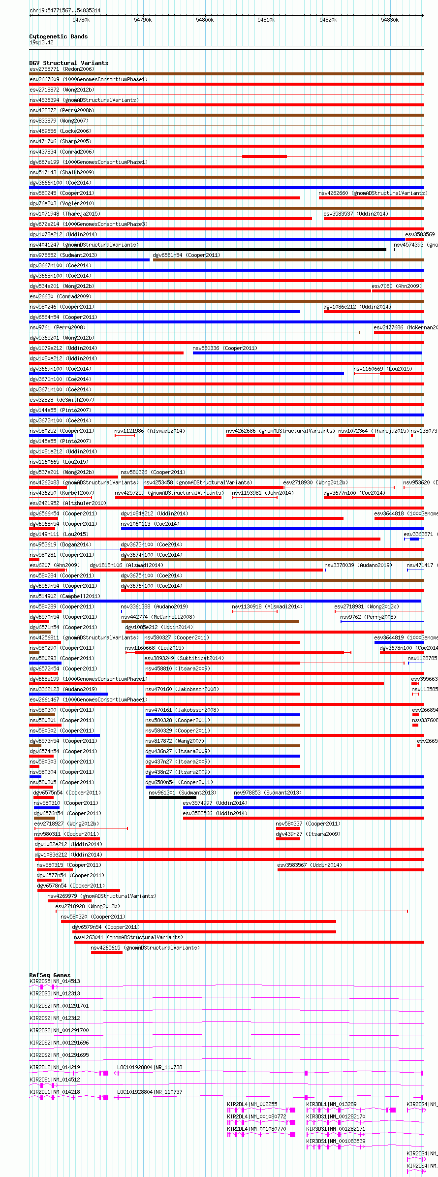 | | Variant Type | CNV deletion | | Copy Number | | | Allele State | | | Allele Origin | | | Probe Count | | | Validation Flag | | | Merged Status | S | | Merged Variants | esv2718924, esv2718920, esv2718926, esv2718922, esv2718872, esv2718911, esv2718913 | | Supporting Variants | | | Samples | SSM006 | | Known Genes | KIR2DL1, KIR2DL4, KIR2DS4, KIR3DL1, LOC100287534 | | Method | Sequencing | | Analysis | Breakdancer:4 times standard deviation,VariationHunter:4 times standard deviation and at least 3 supportting reads | | Platform | Illumina HiSeq 2000 | | Comments | | | Reference | Wong_et_al_2012b | | Pubmed ID | 23290073 | | Accession Number(s) | essv6717565
