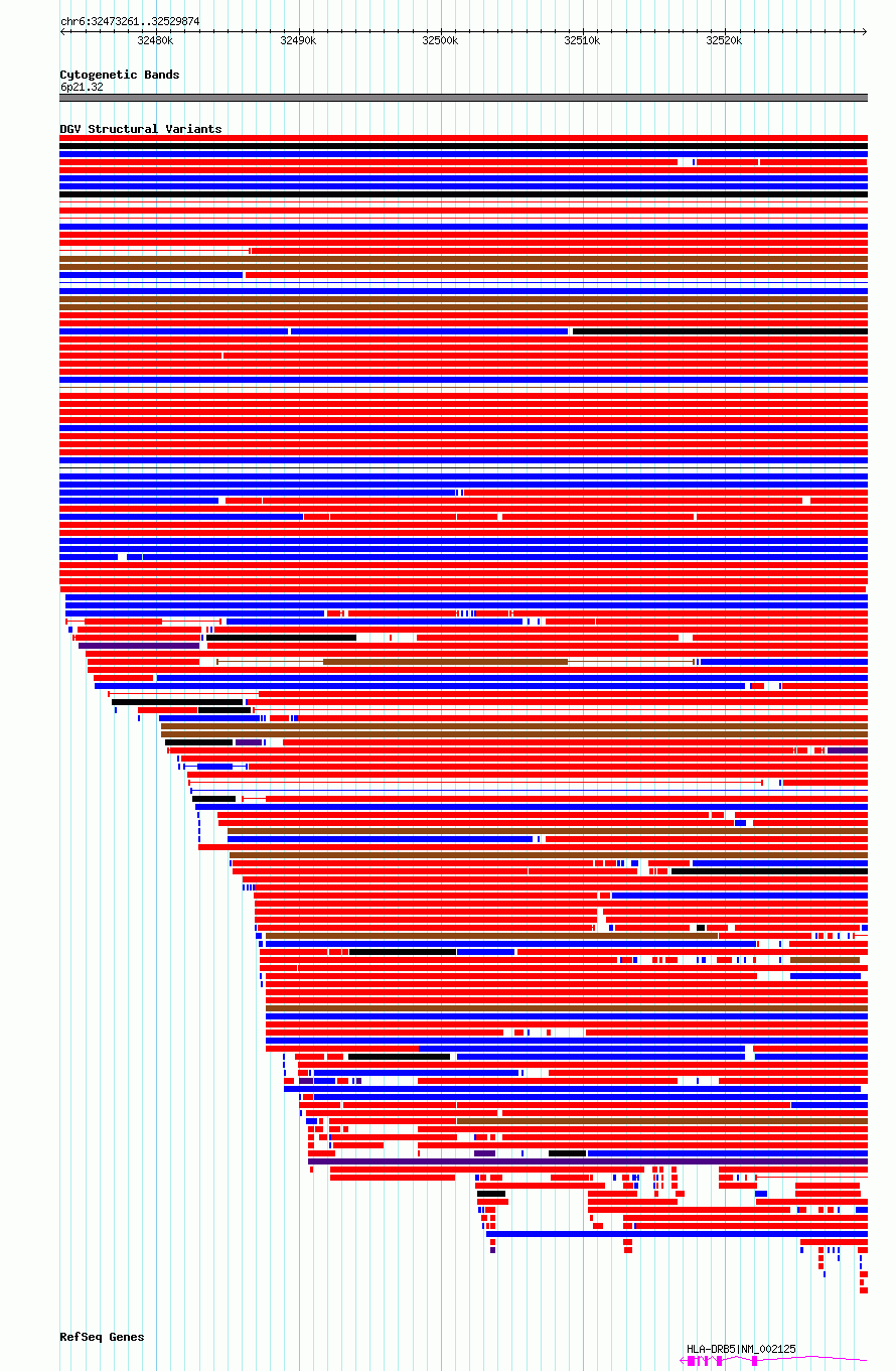 Variant DetailsVariant: essv6719369| Internal ID | 10132094 | | Landmark | | | Location Information | | | Cytoband | 6p21.32 | | Allele length | | Assembly | Allele length | | hg38 | 56614 | | hg19 | 56614 |