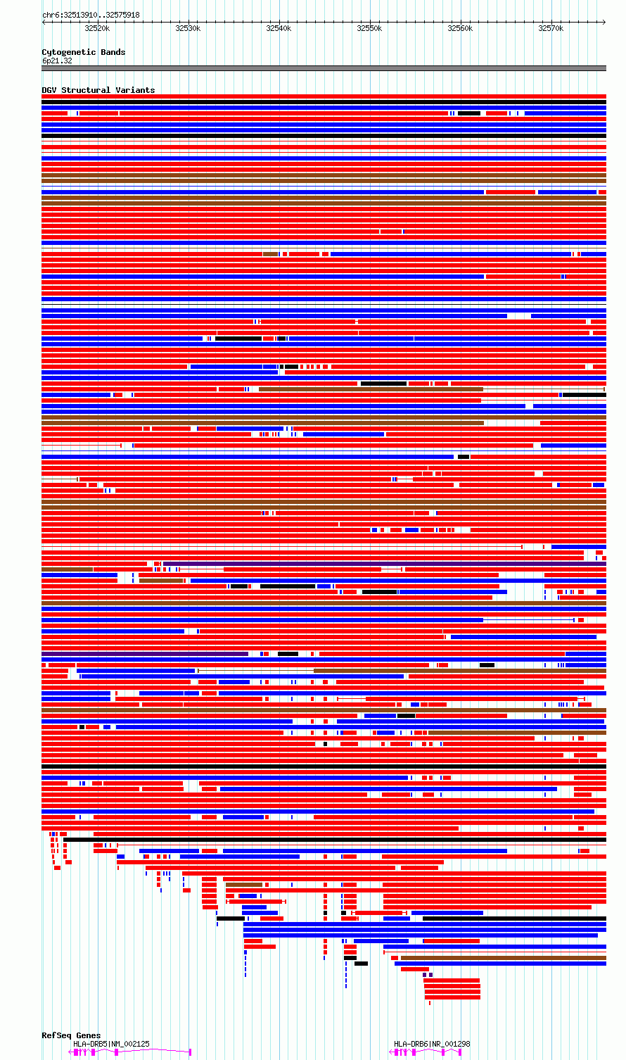 Variant DetailsVariant: essv6719400| Internal ID | 10132067 | | Landmark | | | Location Information | | | Cytoband | 6p21.32 | | Allele length | | Assembly | Allele length | | hg38 | 62009 | | hg19 | 62009 |