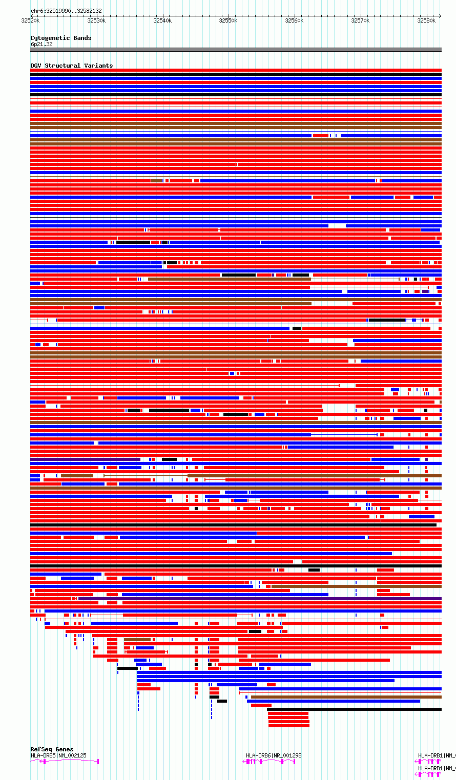 Variant DetailsVariant: essv6719410| Internal ID | 10132058 | | Landmark | | | Location Information | | | Cytoband | 6p21.32 | | Allele length | | Assembly | Allele length | | hg38 | 62143 | | hg19 | 62143 |