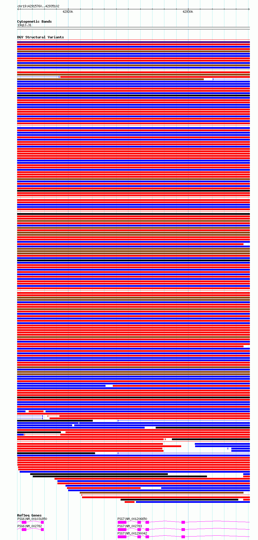 Variant DetailsVariant: essv6721702| Internal ID | 10129996 | | Landmark | | | Location Information | | | Cytoband | 19q13.31 | | Allele length | | Assembly | Allele length | | hg38 | 19343 | | hg19 | 19343 |