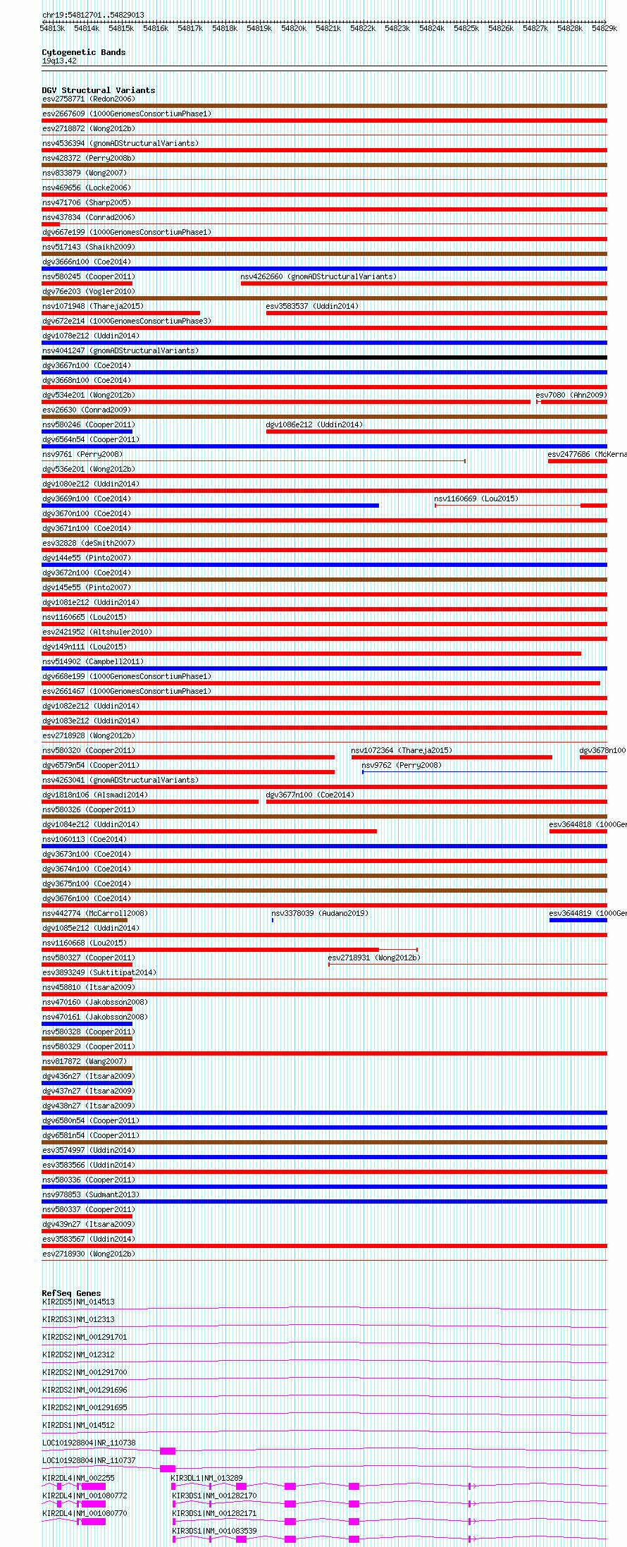 | | Variant Type | CNV deletion | | Copy Number | | | Allele State | | | Allele Origin | | | Probe Count | | | Validation Flag | | | Merged Status | S | | Merged Variants | esv2718920, esv2718926, esv2718872, esv2718913, esv2718930 | | Supporting Variants | | | Samples | SSM044 | | Known Genes | KIR2DL4, KIR3DL1, LOC100287534 | | Method | Sequencing | | Analysis | Breakdancer:4 times standard deviation,VariationHunter:4 times standard deviation and at least 3 supportting reads | | Platform | Illumina HiSeq 2000 | | Comments | | | Reference | Wong_et_al_2012b | | Pubmed ID | 23290073 | | Accession Number(s) | essv6721749