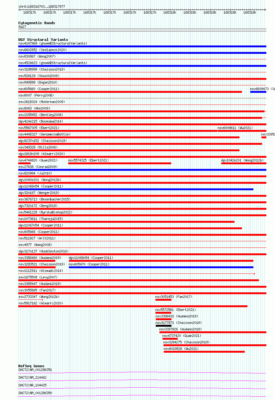 | | Variant Type | CNV deletion | | Copy Number | | | Allele State | | | Allele Origin | | | Probe Count | | | Validation Flag | | | Merged Status | S | | Merged Variants | esv2733348, esv2733346, esv2733342, esv2733344 | | Supporting Variants | | | Samples | SSM045 | | Known Genes | DACT2 | | Method | Sequencing | | Analysis | Breakdancer:4 times standard deviation,VariationHunter:4 times standard deviation and at least 3 supportting reads | | Platform | Illumina HiSeq 2000 | | Comments | | | Reference | Wong_et_al_2012b | | Pubmed ID | 23290073 | | Accession Number(s) | essv6723380