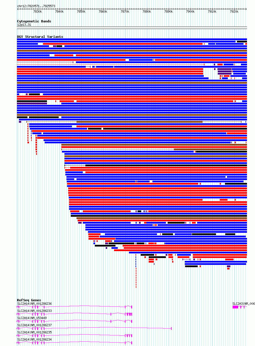 Variant DetailsVariant: essv6724469| Internal ID | 10135505 | | Landmark | | | Location Information | | | Cytoband | 12p13.31 | | Allele length | | Assembly | Allele length | | hg38 | 105003 | | hg19 | 105003 |