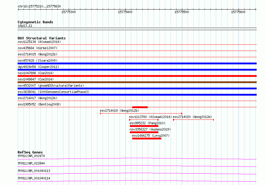 Variant DetailsVariant: essv6724946| Internal ID | 9789248 | | Landmark | | | Location Information | | | Cytoband | 16p13.11 | | Allele length | | Assembly | Allele length | | hg38 | 421 | | hg19 | 421 |
