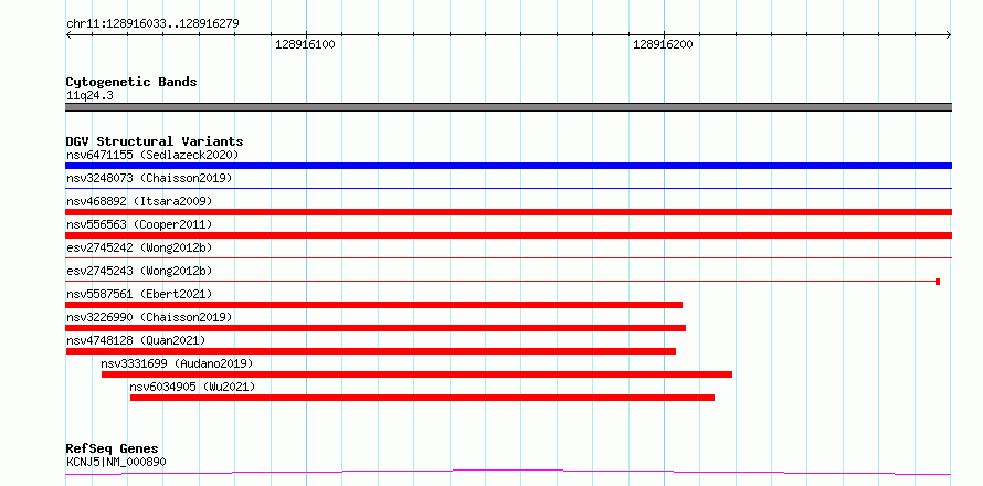 | | Variant Type | CNV deletion | | Copy Number | | | Allele State | | | Allele Origin | | | Probe Count | | | Validation Flag | | | Merged Status | S | | Merged Variants | esv2745243, esv2745242 | | Supporting Variants | | | Samples | SSM046 | | Known Genes | KCNJ5 | | Method | Sequencing | | Analysis | Breakdancer:4 times standard deviation,VariationHunter:4 times standard deviation and at least 3 supportting reads | | Platform | Illumina HiSeq 2000 | | Comments | | | Reference | Wong_et_al_2012b | | Pubmed ID | 23290073 | | Accession Number(s) | essv6728274