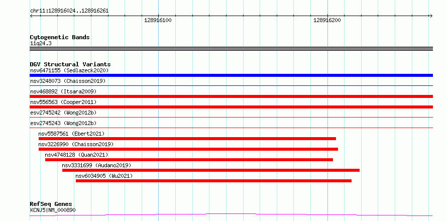 | | Variant Type | CNV deletion | | Copy Number | | | Allele State | | | Allele Origin | | | Probe Count | | | Validation Flag | | | Merged Status | S | | Merged Variants | esv2745243, esv2745242 | | Supporting Variants | | | Samples | SSM047 | | Known Genes | KCNJ5 | | Method | Sequencing | | Analysis | Breakdancer:4 times standard deviation,VariationHunter:4 times standard deviation and at least 3 supportting reads | | Platform | Illumina HiSeq 2000 | | Comments | | | Reference | Wong_et_al_2012b | | Pubmed ID | 23290073 | | Accession Number(s) | essv6732068