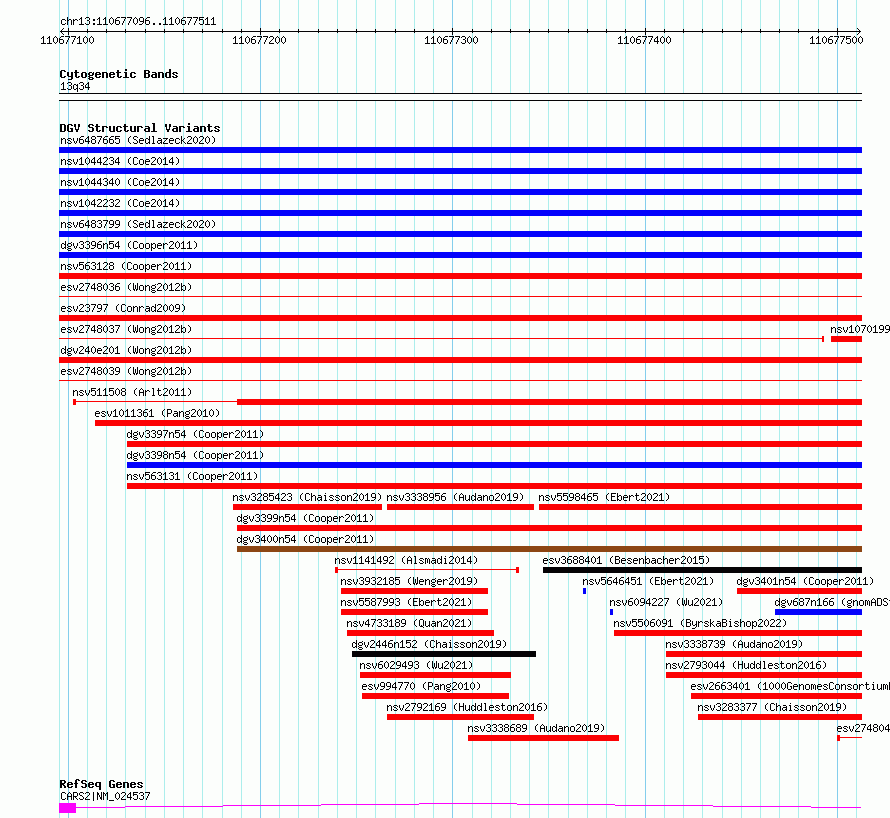 | | Variant Type | CNV deletion | | Copy Number | | | Allele State | | | Allele Origin | | | Probe Count | | | Validation Flag | | | Merged Status | S | | Merged Variants | esv2748038, esv2748039, esv2748036, esv2748037 | | Supporting Variants | | | Samples | SSM047 | | Known Genes | CARS2 | | Method | Sequencing | | Analysis | Breakdancer:4 times standard deviation,VariationHunter:4 times standard deviation and at least 3 supportting reads | | Platform | Illumina HiSeq 2000 | | Comments | | | Reference | Wong_et_al_2012b | | Pubmed ID | 23290073 | | Accession Number(s) | essv6732337
