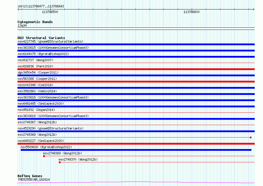 Variant DetailsVariant: essv6732363| Internal ID | 10143171 | | Landmark | | | Location Information | | | Cytoband | 13q34 | | Allele length | | Assembly | Allele length | | hg38 | 167 | | hg19 | 167 |