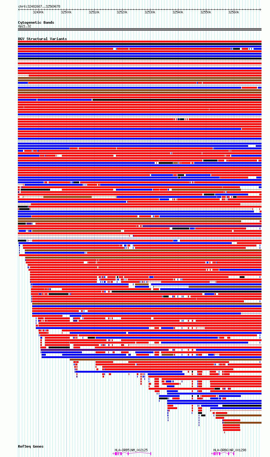 Variant DetailsVariant: essv6734330| Internal ID | 10143842 | | Landmark | | | Location Information | | | Cytoband | 6p21.32 | | Allele length | | Assembly | Allele length | | hg38 | 87012 | | hg19 | 87012 |