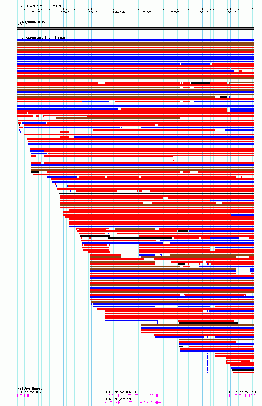 | | Variant Type | CNV deletion | | Copy Number | | | Allele State | | | Allele Origin | | | Probe Count | | | Validation Flag | | | Merged Status | S | | Merged Variants | esv2721006 | | Supporting Variants | | | Samples | SSM050 | | Known Genes | CFH, CFHR1, CFHR3 | | Method | Sequencing | | Analysis | Breakdancer:4 times standard deviation,VariationHunter:4 times standard deviation and at least 3 supportting reads | | Platform | Illumina HiSeq 2000 | | Comments | | | Reference | Wong_et_al_2012b | | Pubmed ID | 23290073 | | Accession Number(s) | essv6736093