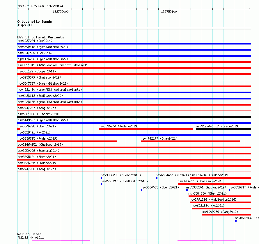 | | Variant Type | CNV deletion | | Copy Number | | | Allele State | | | Allele Origin | | | Probe Count | | | Validation Flag | | | Merged Status | S | | Merged Variants | esv2747037, esv2747038 | | Supporting Variants | | | Samples | SSM050 | | Known Genes | ANKLE2 | | Method | Sequencing | | Analysis | Breakdancer:4 times standard deviation,VariationHunter:4 times standard deviation and at least 3 supportting reads | | Platform | Illumina HiSeq 2000 | | Comments | | | Reference | Wong_et_al_2012b | | Pubmed ID | 23290073 | | Accession Number(s) | essv6737984